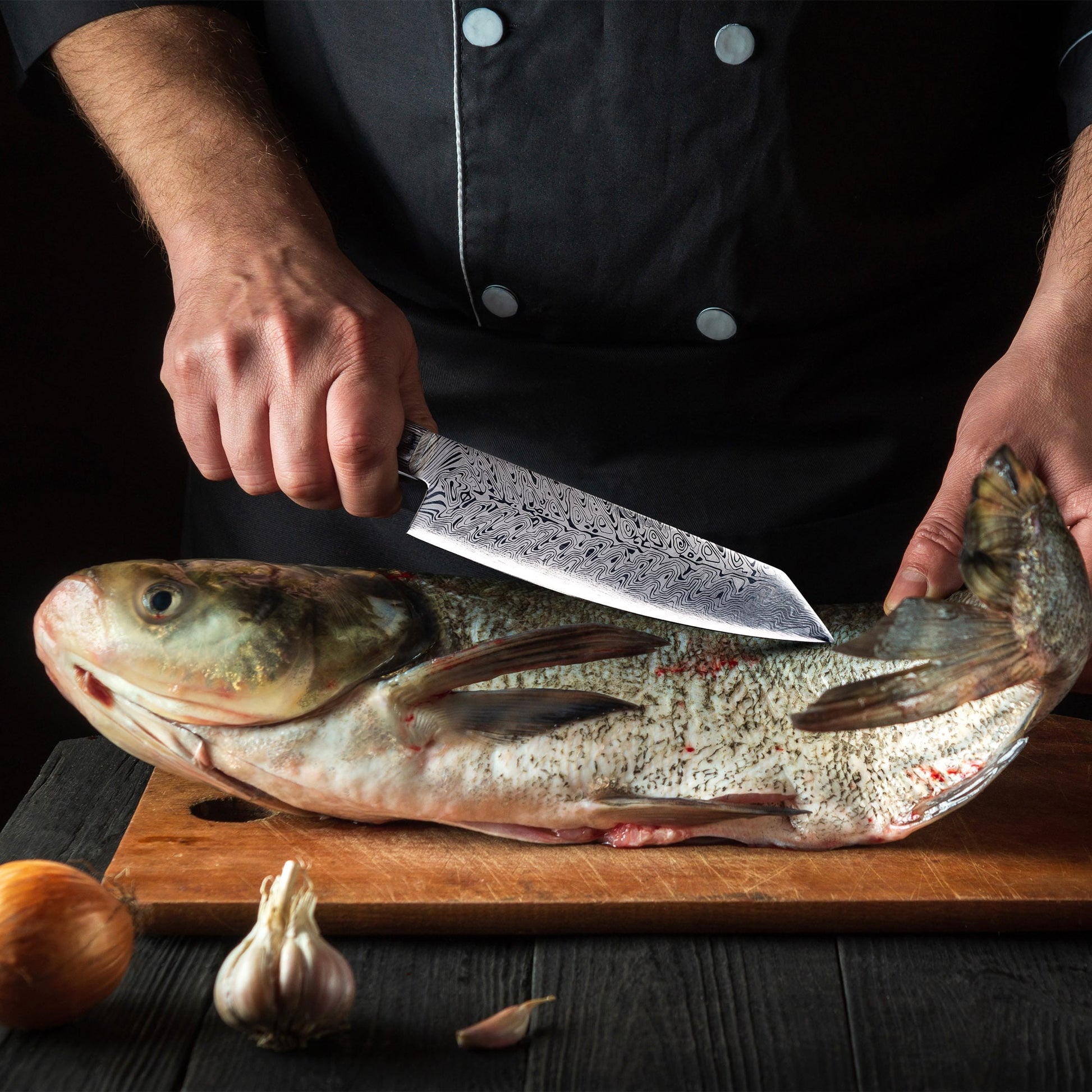 Découvrez notre couteau de chef, votre allié essentiel pour repousser les limites de la cuisine. Inspiré du légendaire Kiritsuke japonais, symbole de prestige réservé aux chefs exécutifs, ce couteau incarne l'équilibre parfait entre puissance, précision et élégance.
